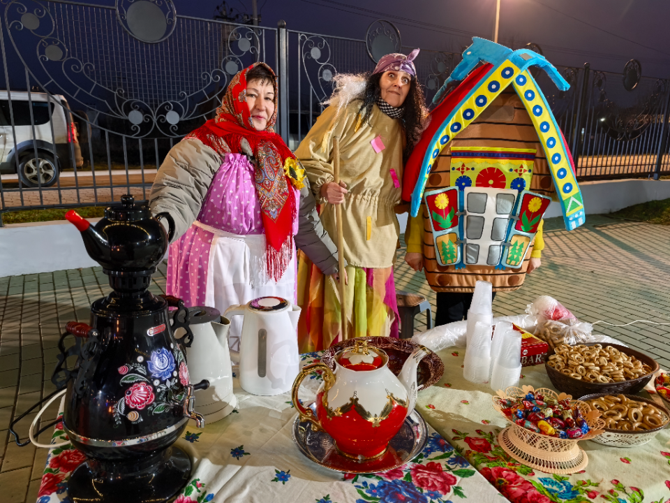 В перерывах между развлечениями дети и взрослые грелись у теплого очага, наслаждаясь ароматом горячего чая, хрустом попкорна и нежностью сладкой ваты.