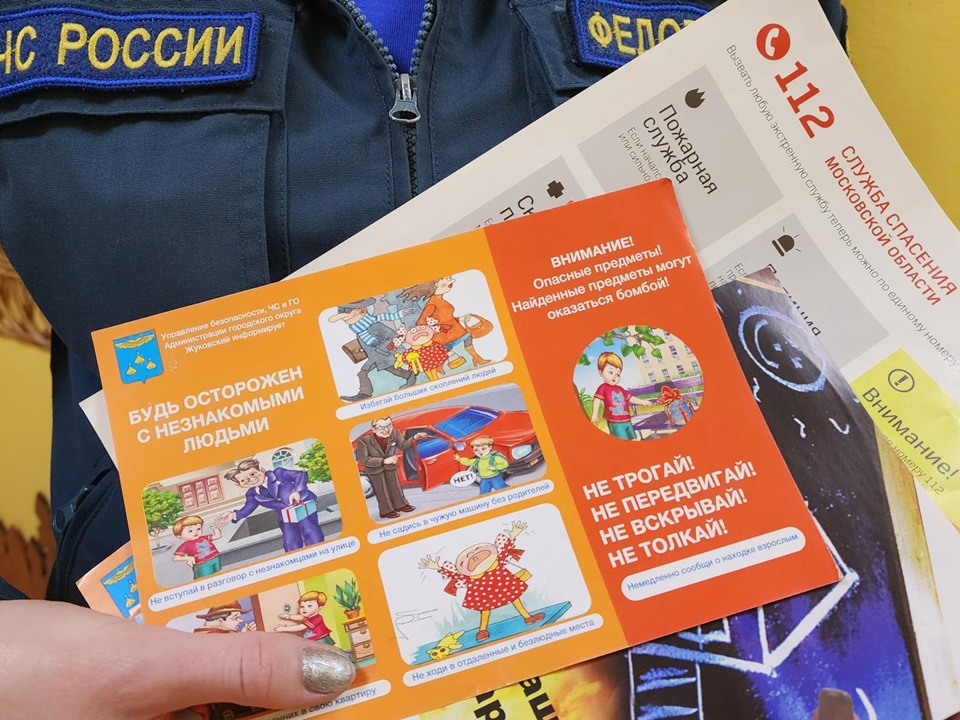 По завершении урока каждый ребенок получил красочную листовку с изображением опасных ситуаций не только связанных с огнем, но и, например, с тонким льдом или незнакомцами.