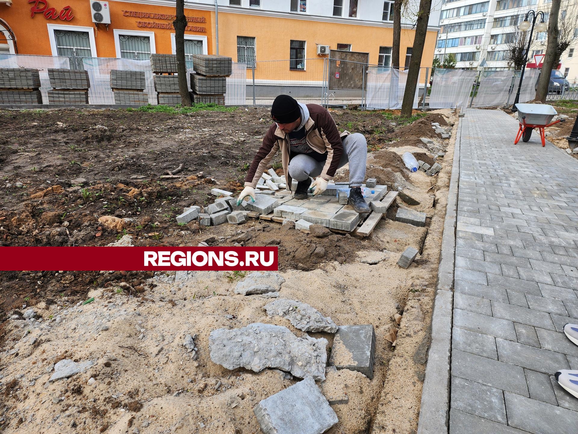 Подрядчик уже укладывает тротуарную плитку и устанавливает бортовой камень на проезде и парковке.