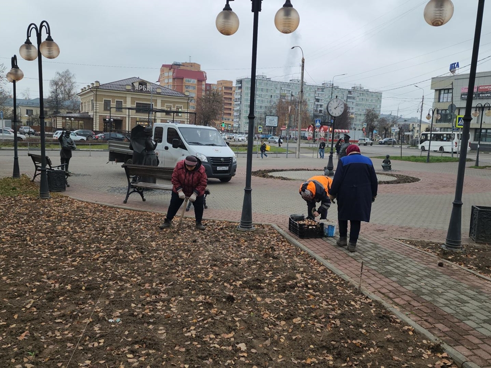 В Серпухове идет активная подготовка к весеннему цветению: коммунальщики высаживают луковицы тюльпанов на городских клумбах.