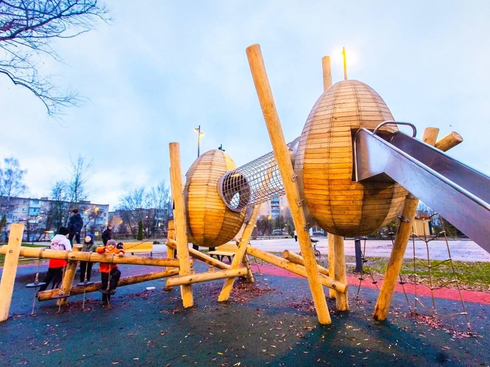 По всему парку разместили восемнадцать скульптур животных — от зубра до бобра. Также появились три перголы и тематические беседки. Для удобства посетителей установили информационные стенды с правилами поведения. У центрального входа со стороны улицы Советской гостей встречает величественный павлин с раскрытым оперением.