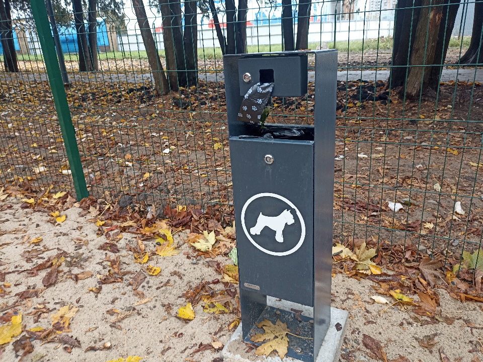 На территории также размещены урны с пакетами, что позволяет владельцам своевременно убирать за своими питомцами, поддерживая чистоту и порядок для комфорта всех посетителей.