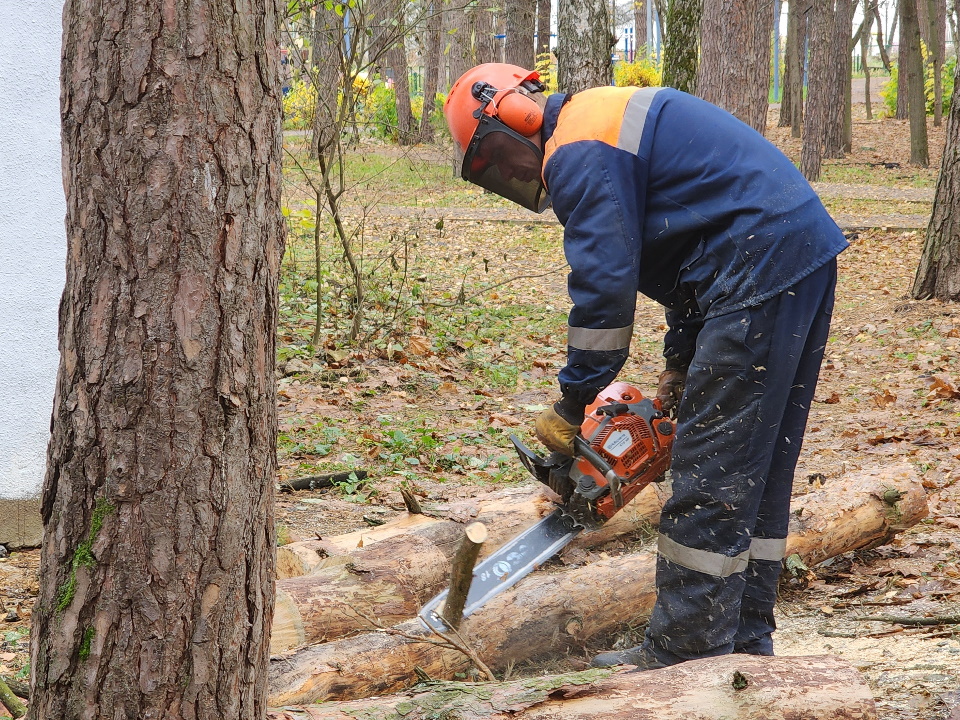 Высокая сухая сосна, расположенная на самом краю протвинского парка «Сказка» у бывшего магазина «Юбилейный», была удалена.