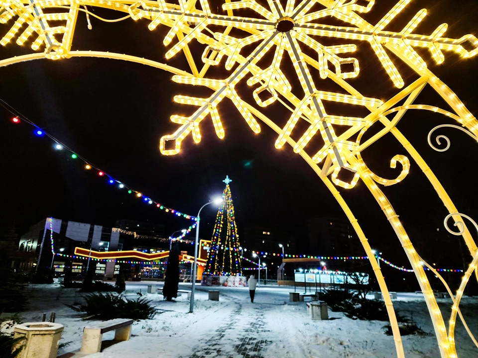 В Пущине расцвела зимняя сказка: на главной площади у ЦКР «Вертикаль» вознесся «Новогодний портал» — сверкающая арка, усыпанная причудливыми узорами и сияющими снежинками.