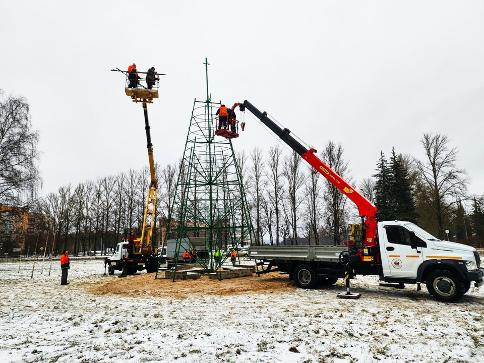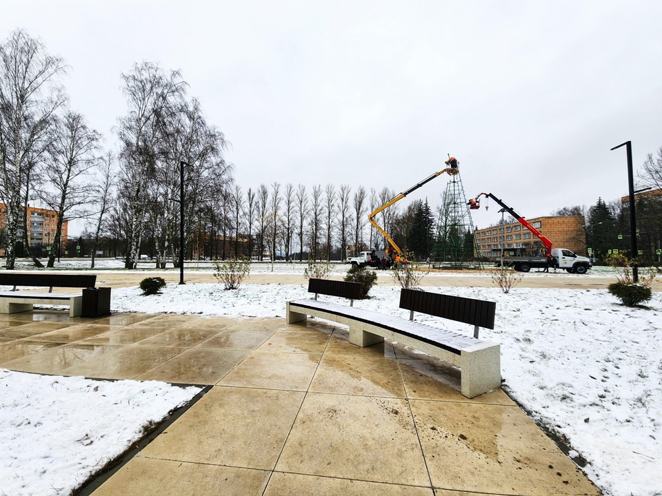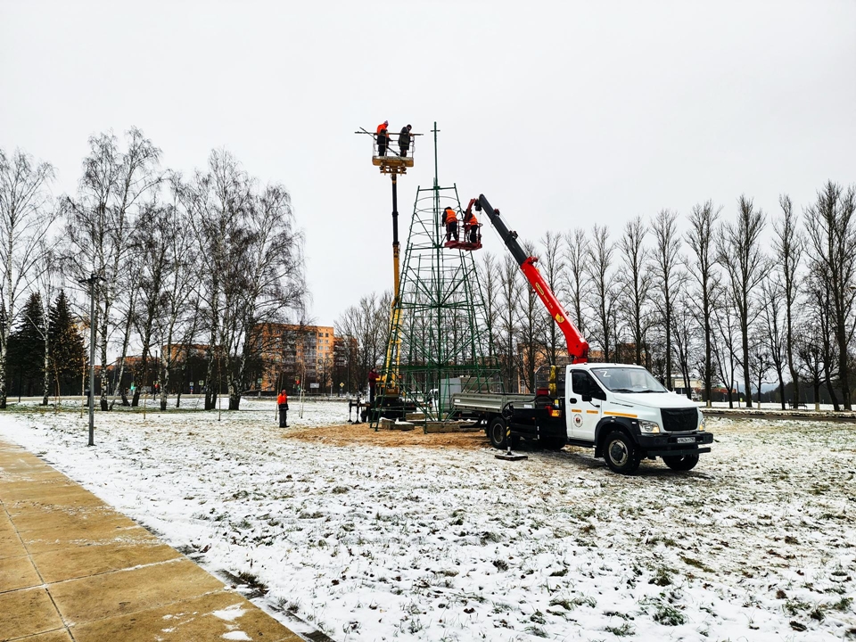 В Пущине начали создавать новогоднюю зону на площади у городского фонтана. Специалисты «Комбината благоустройства» монтируют 15‑метровую елку. Дерево поставили на специальную песчаную подложку, а вокруг него установят светящийся заборчик, который добавит праздничной атмосферы.