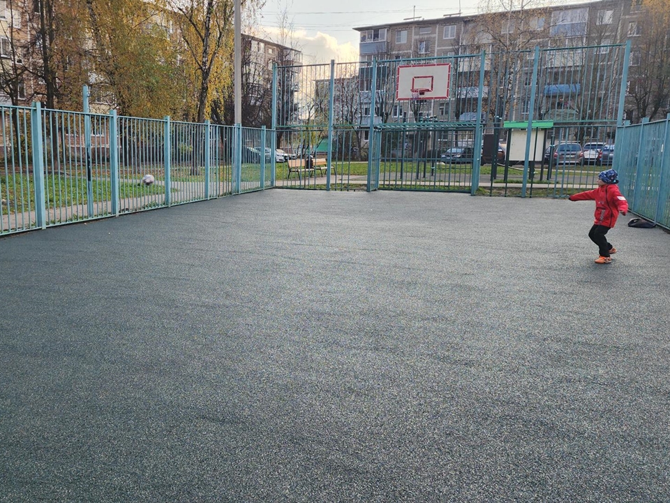Новая спортивная зона идеально подходит для занятий самыми разными видами спорта: футболом, баскетболом, волейболом. Резиновая поверхность обладает отличными амортизационными свойствами, прекрасно выдерживает повышенные нагрузки и способна служить долгие годы даже при активном использовании детьми и подростками.