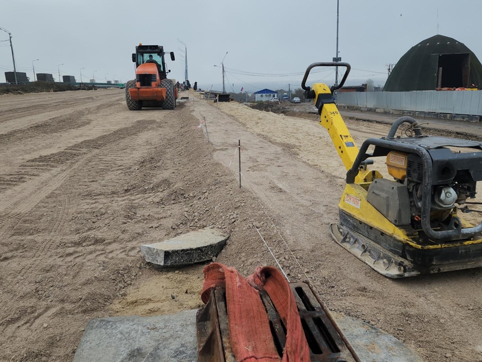На площадке кипит работа: задействованы 60 специалистов и около 45 единиц техники. Среди них самосвалы и манипуляторы, которые обеспечивают логистику материалов. Активно работают экскаваторы и бульдозеры, подготавливающие основания и выравнивающие площадки. Подъемные краны участвуют в монтаже конструкций, а асфальтоукладчик будет задействован на завершающем этапе укладки покрытия.