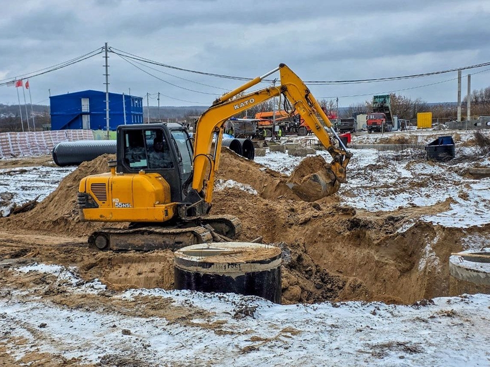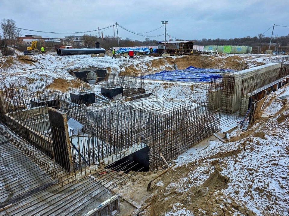 На площадке ежедневно трудятся более 80 человек и задействовано 13 единиц строительной техники. Идут активные монолитные работы, монтаж инженерных сетей, демонтаж устаревших конструкций и устройство новых фундаментов.