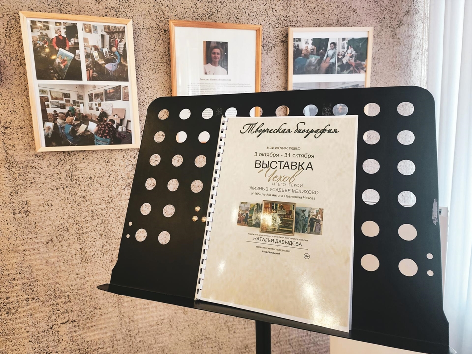 Особую часть экспозиции составляют работы, посвященные усадьбе Мелихово — месту, где творил писатель. Зрители могут увидеть, как художник интерпретировал атмосферу чеховского дома, его сад и окружающий пейзаж.