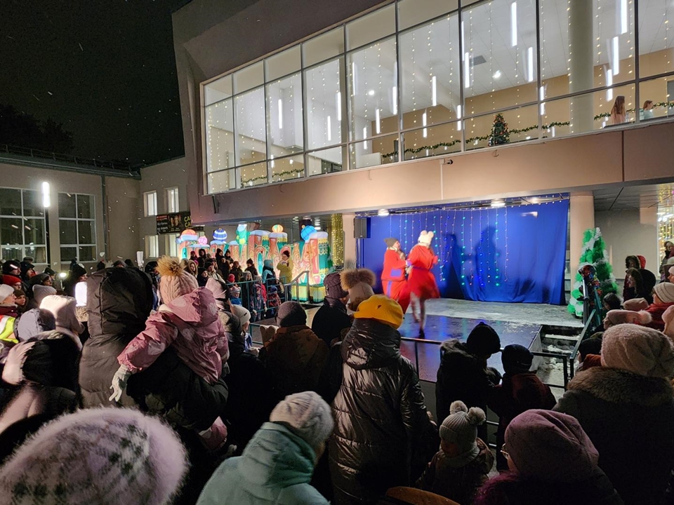 Апогеем праздника стало совместное зажжение огней на новогодней елке вместе с Дедом Морозом. Выпавший снег добавил торжеству особенной магии и очарования.