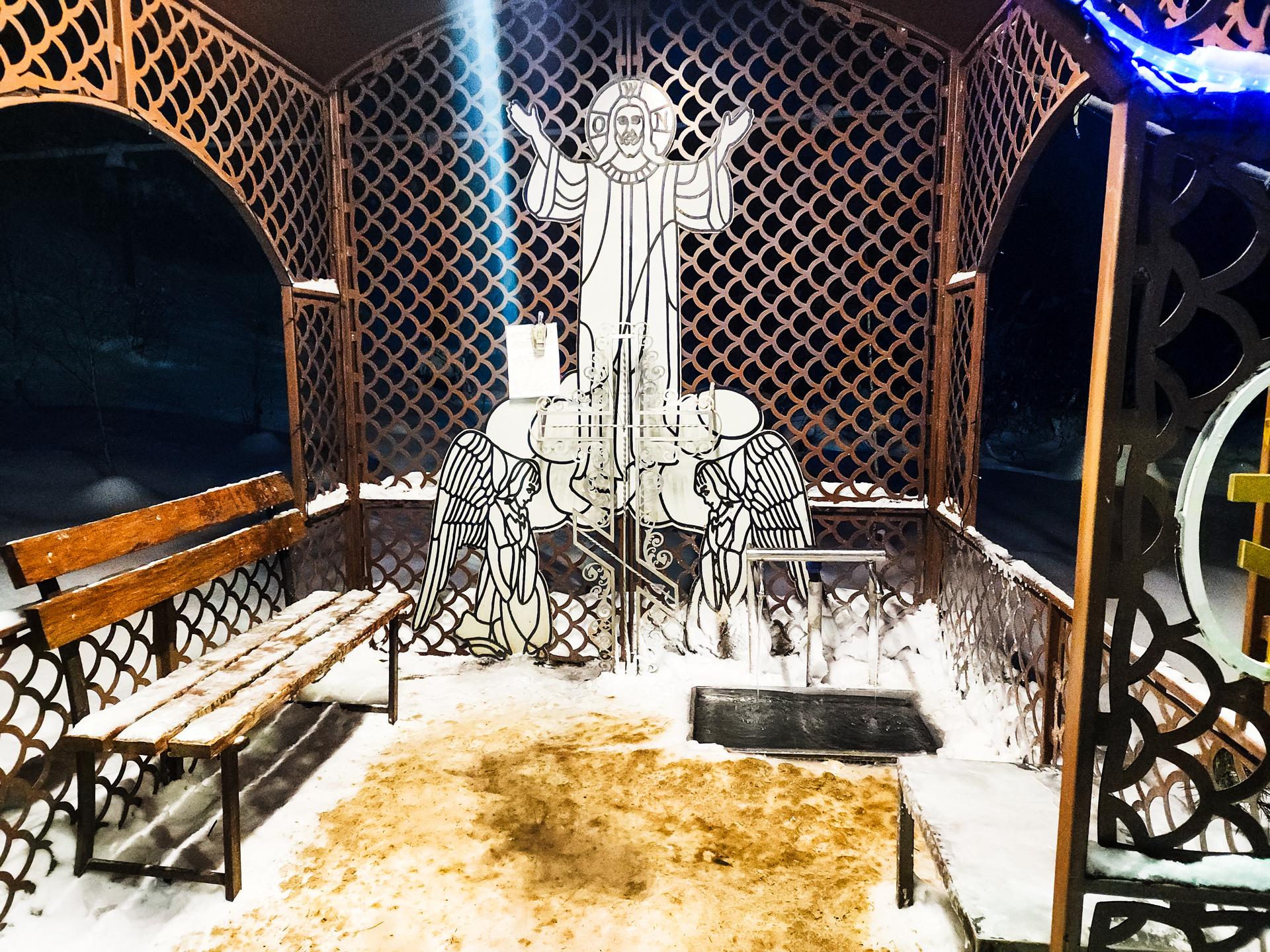 Возле купели установили палатки для обогрева, ночью будут дежурить медики и спасатели. Они обеспечат безопасность всех желающих пройти древний христианский обряд.