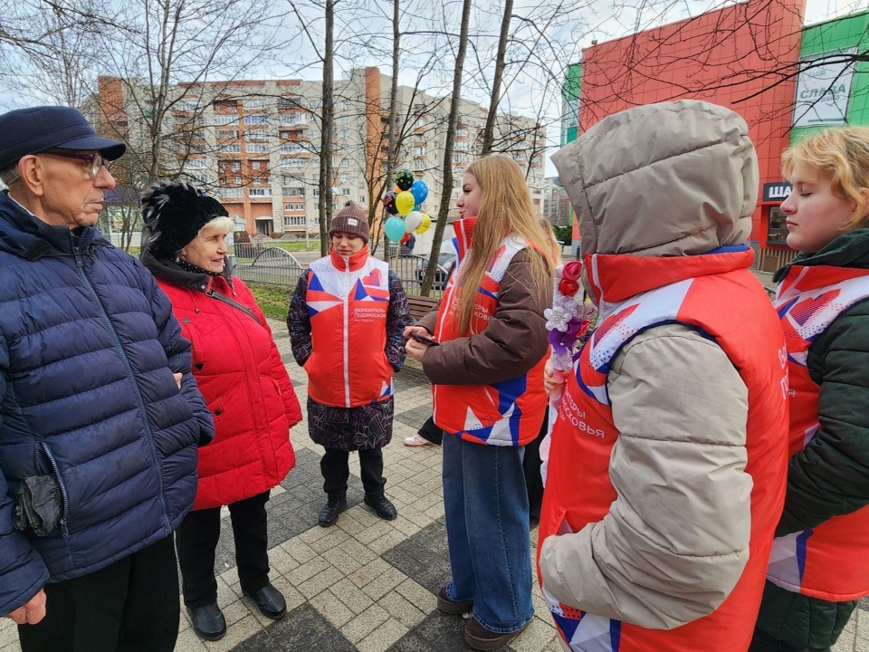 Дружный молодой коллектив местного штаба «Волонтеров Подмосковья» города Протвино порадовал горожанок красивой акцией к празднику Дня матери, рассказала координатор волонтеров Яна Бичук.