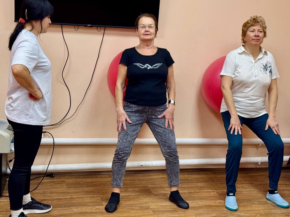 Инструктор Оксана Казанцева проводит тренировку, на которой участники осваивают упражнения, способствующие укреплению здоровья и улучшению самочувствия. Эти занятия также помогают предупредить различные заболевания.