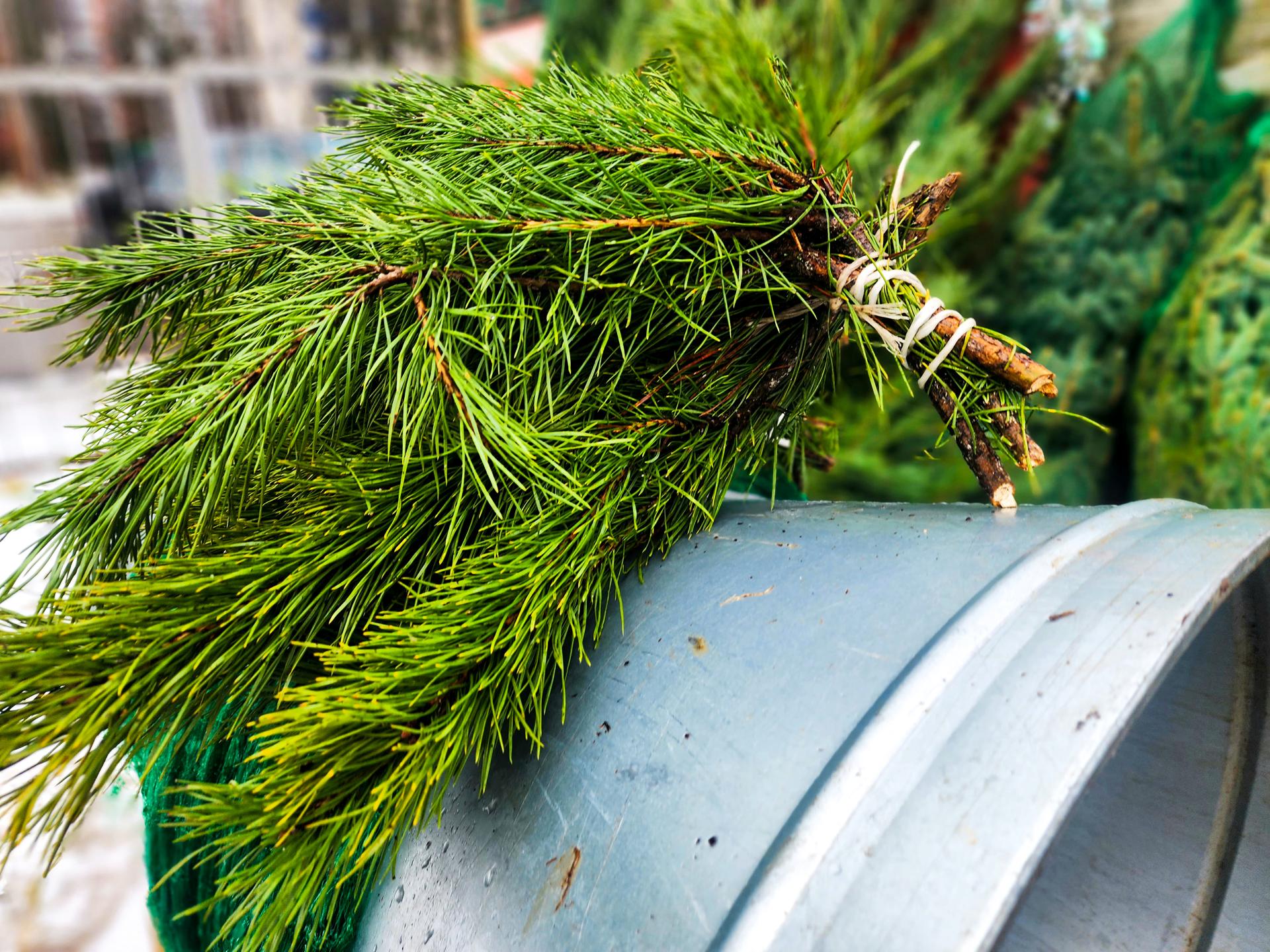 В Пущине заработал официальный елочный базар, его легко заметить на городском рынке по красочному баннеру «Зима в Подмосковье».