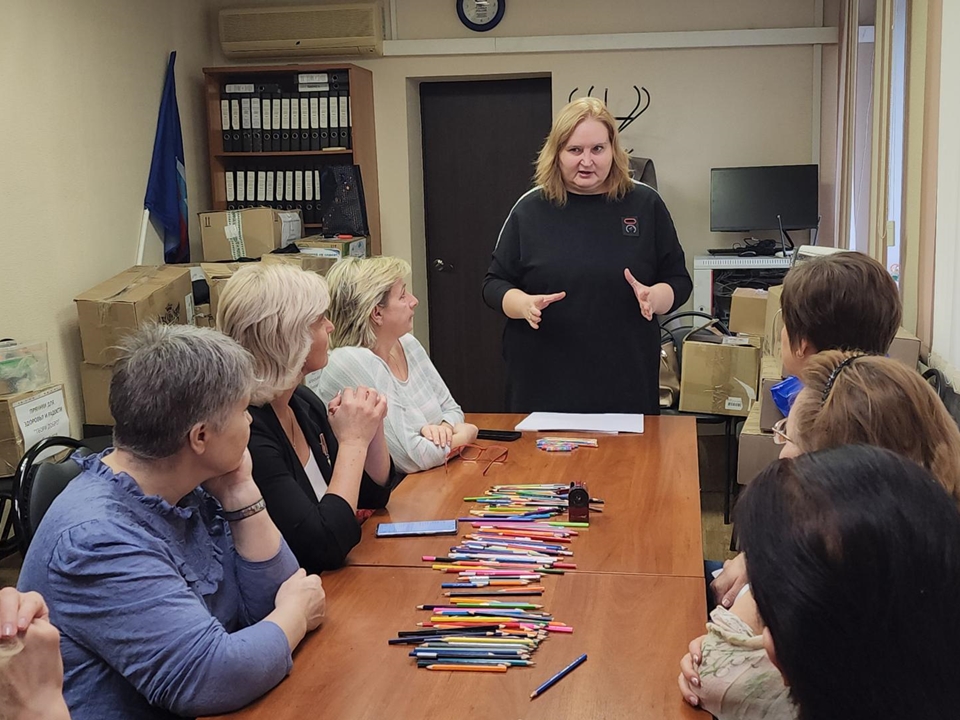 На площадке общественной приемной партии «Единая Россия» в Серпухове прошла необычная встреча: председатель общественной организации «Люмос» Татьяна Савина организовала арт-терапевтическое занятие специально для жен и матерей военнослужащих, находящихся в зоне СВО. Занятие проходило в форме творческой мастерской, где участницы создавали собственные метафорические автопортреты.