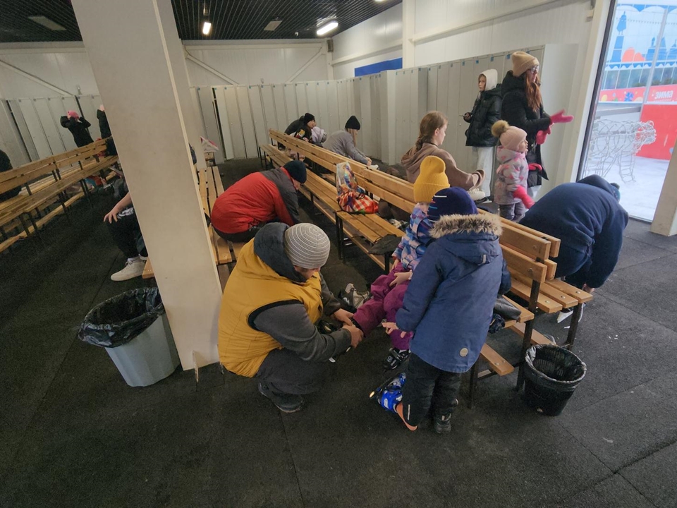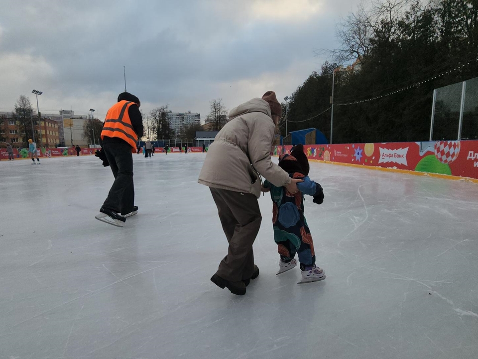 Каток занимает площадь в 1,4 тыс. м². Чтобы не было столпотворения, действует система предварительной записи — вход осуществляется по QR‑коду. Для посетителей обустроена теплая раздевалка с индивидуальными шкафчиками, работает прокат и заточка коньков. Малышам помогают инструкторы, а также предоставляются специальные опоры‑помощники для катания.