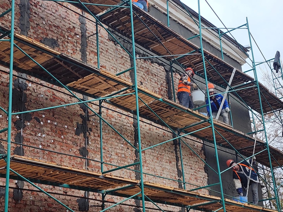 Во Дворце культуры «Исток» в Серпухове кипит работа: здание переживает масштабную трансформацию. Специалисты подрядной организации вплотную занялись фасадом, именно эта часть сейчас в центре внимания строителей.