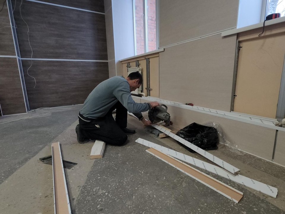 «Уже смонтирована электропроводка, установлены дверные полотна, стены обшиты антивандальными панелями. Следующим этапом станет полная замена потолочного покрытия. В дальнейшем планируем заменить напольное покрытие и отремонтировать два лечебных кабинета», — рассказала рлавный врач медучреждения Екатерина Чуракова