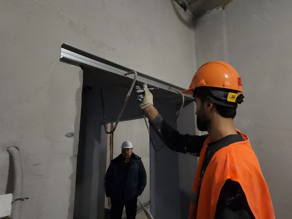 «Возведение внутренних перегородок практически закончено — осталась лишь одна, в новой электрощитовой комнате. Параллельно мы ведем электромонтажные и сантехнические работы, монтируем систему отопления и водопровод», — рассказал начальник участка подрядной компании Андрей Устеменко.