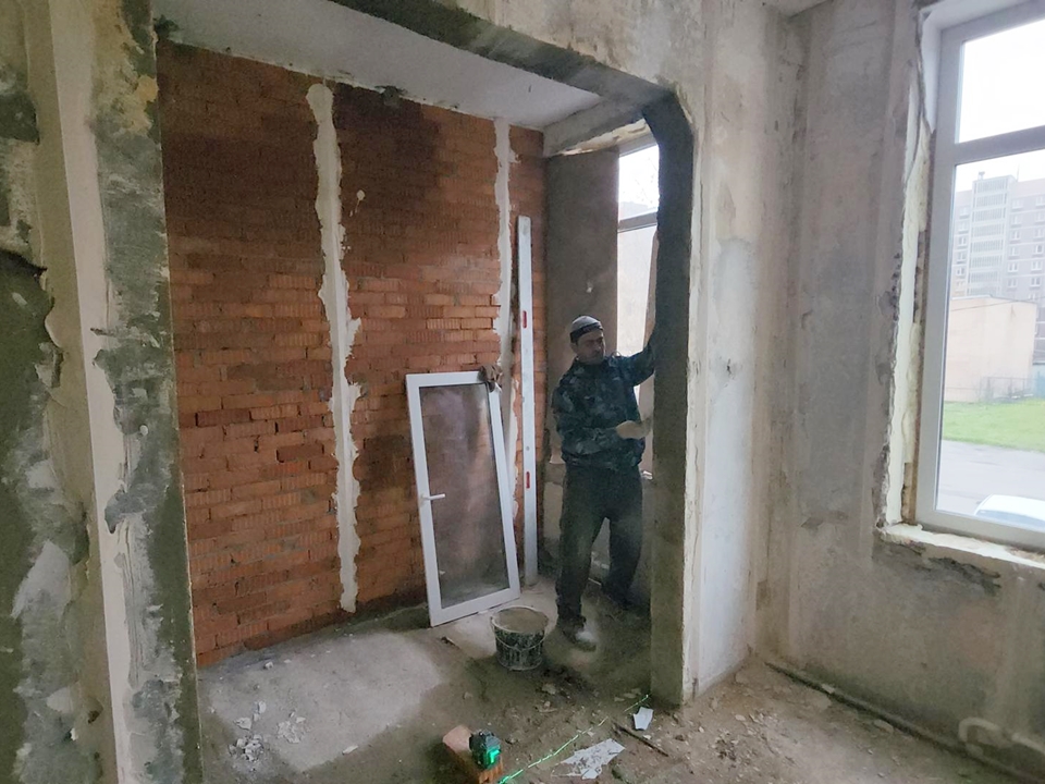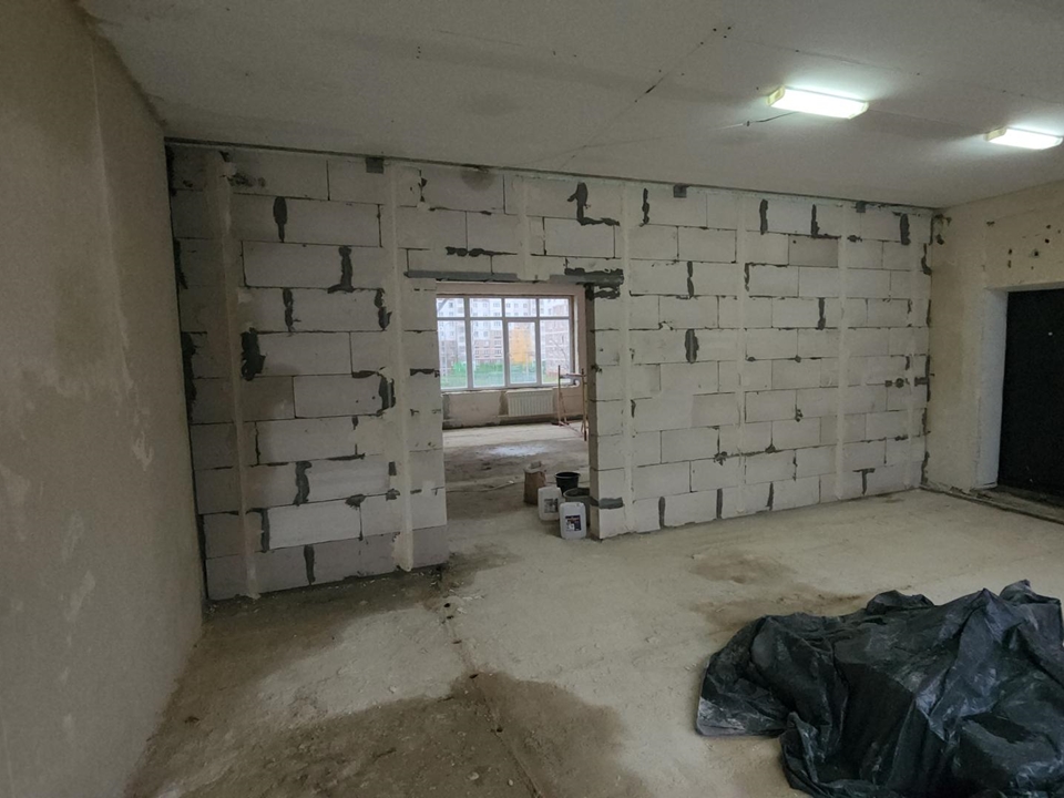 «Мы полностью демонтировали старые конструкции и возвели все перегородки согласно проекту. Сейчас завершающая стадия — идет штукатурка новых внутренних перегородок», — рассказывает начальник строительного участка подрядной организации Игорь Лупашин.