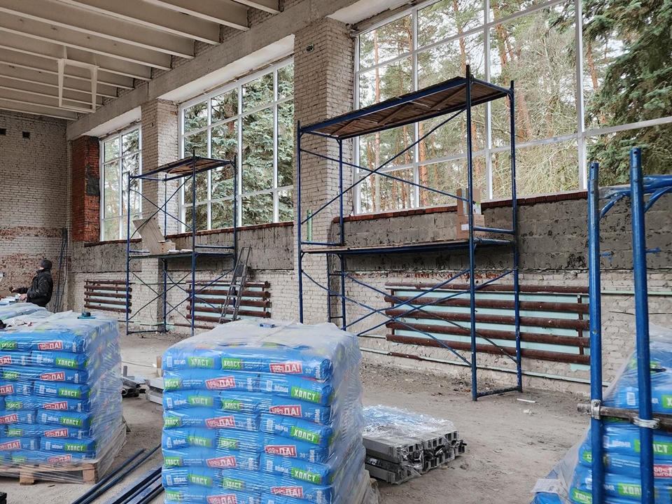 В младшем корпусе почти готова полусухая стяжка полов. Штукатурные работы продвинулись значительно, их выполнили на 82 процента. Следующим этапом станет чистовая отделка помещений.