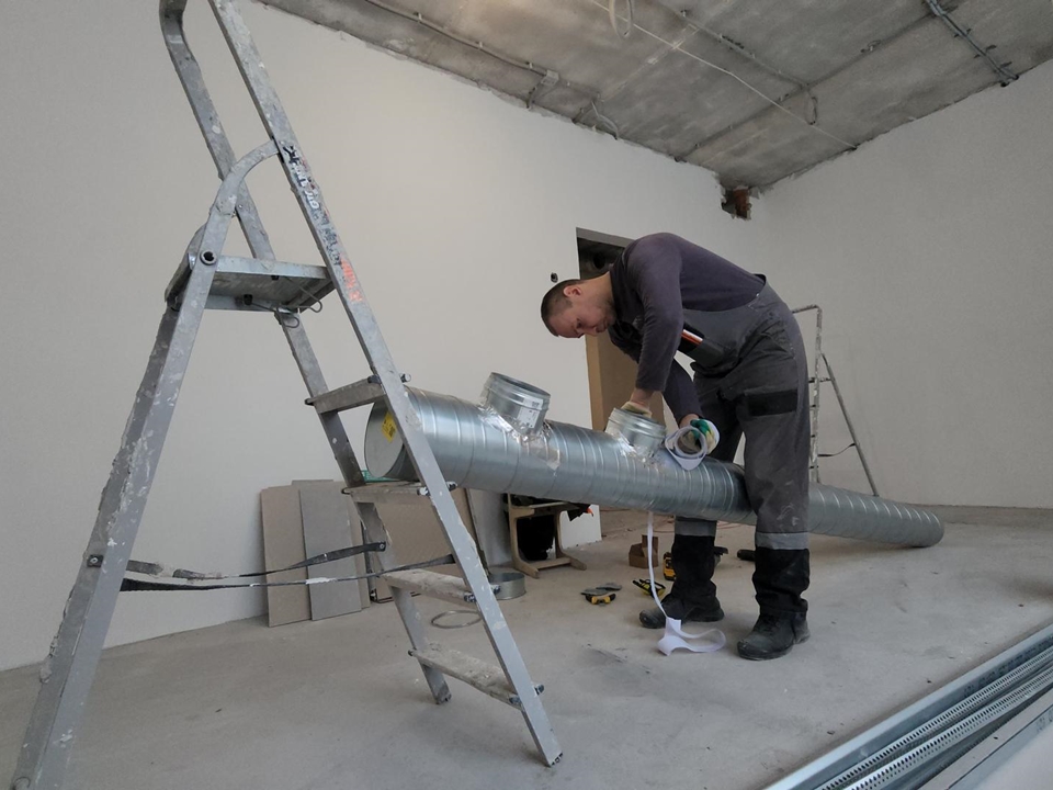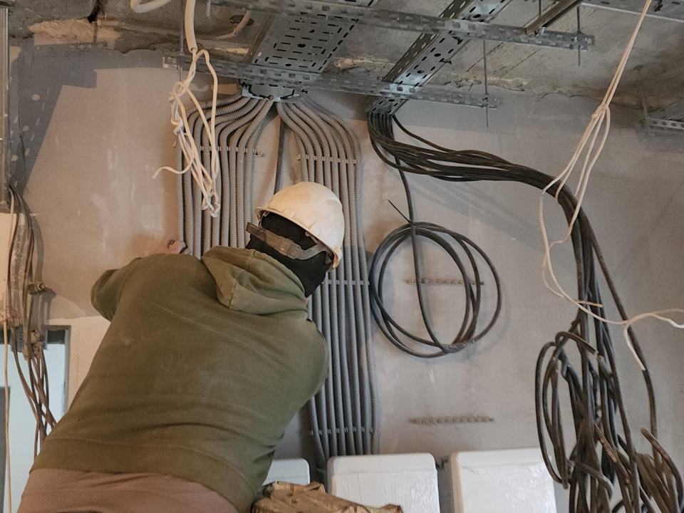 «Сейчас наши специалисты устанавливают электросчетчики и подключают оборудование. Параллельно другая бригада монтирует вентиляционные короба и пробивает отверстия в перекрытиях для вентиляционных каналов», — поделился подробностями о ходе работ начальник участка подрядной организации Андрей Устеменко.