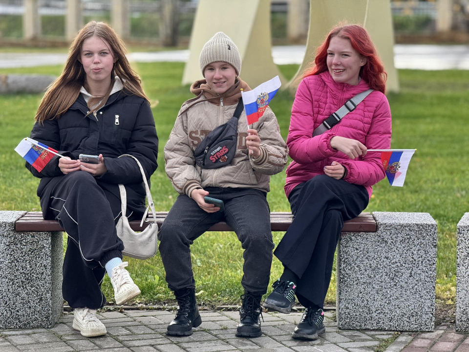 «Активисты совместно с „Молодой гвардией“ провели шествие, написали вместе с жителями письма-пожелания солдатам, раздали зрителям российские флаги», — рассказала волонтер Александра Куракина.