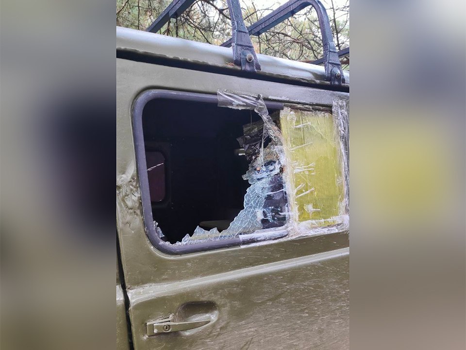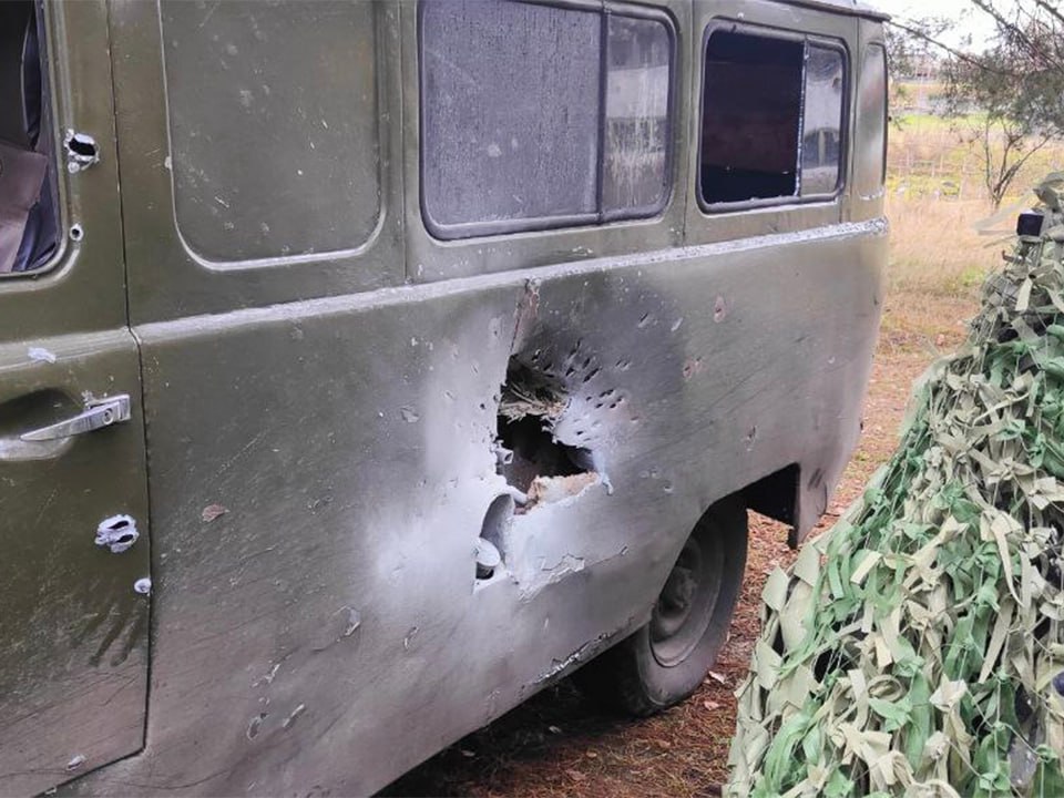 «Буся вытащила нас. Мы на нее уже молимся — все целы, никто не пострадал. Машина на ходу, пока холодов нет, будем так ездить. И обстрел пережила, и дрон влетел, оставив дыру, но Буся справилась!» — сказал боец СВО с позывным Док.