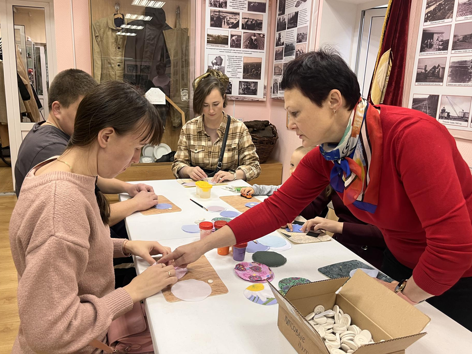 Для посетителей организовали бесплатные экскурсии по экспозиции музея, интересный мастер-класс по изготовлению брошки-пуговки и праздничный концерт фолк-группы «Кладовая солнца».