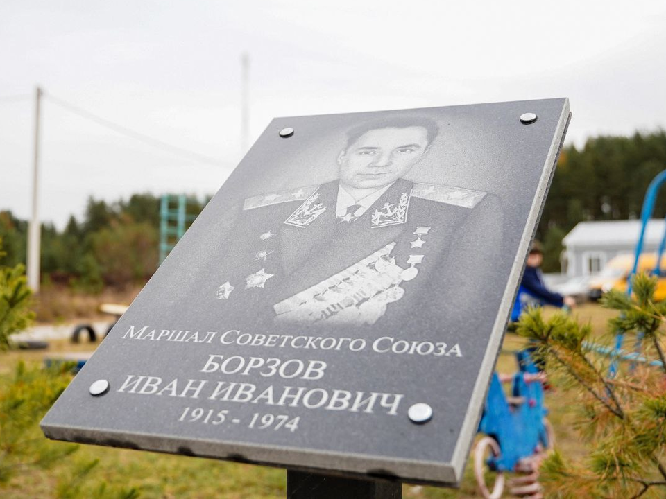На площадке установлена памятная плита со списком из 96 фамилий жителей деревни, которые ушли на фронт в годы борьбы с нацизмом. Одним из них был герой Советского Союза, маршал Иван Иванович Борзов. Ему посвящена отдельная памятная плита.