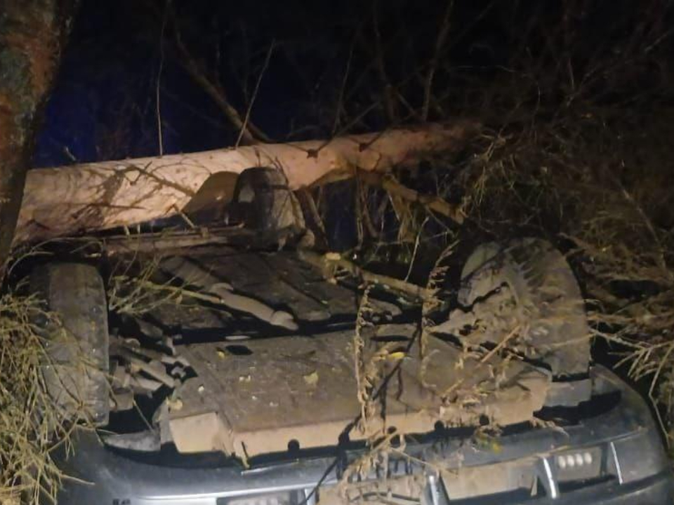 После этого спасатели убрали дерево с автомобиля и поставили машину на колеса.