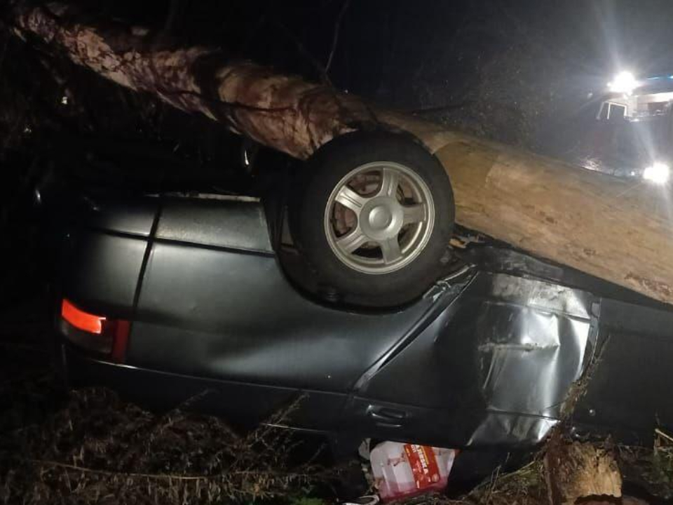 «На место аварии оперативно прибыли работники противопожарно-спасательной службы, сотрудники ГИБДД и скорой медицинской помощи. Водитель и пассажир получили незначительные повреждения и смогли выбраться из автомобиля самостоятельно. Медики оказали им первую помощь, после чего участники ДТП отказались от госпитализации. Специалисты распилили упавшее дерево, тем самым освободив проезжую часть дороги», — рассказал начальник караула Олег Бобров.