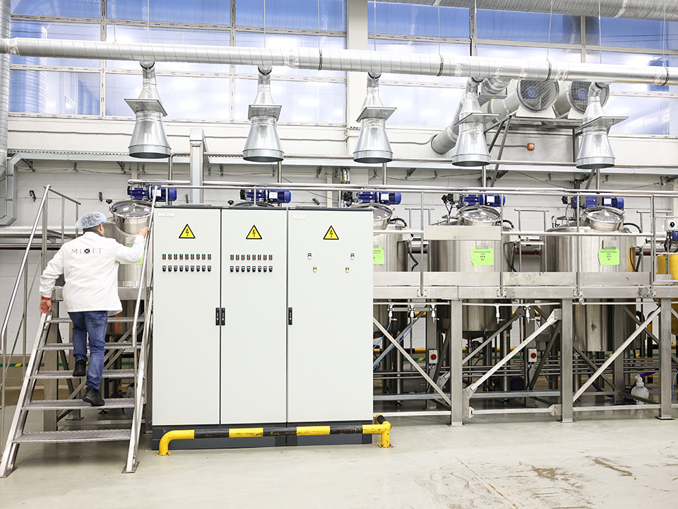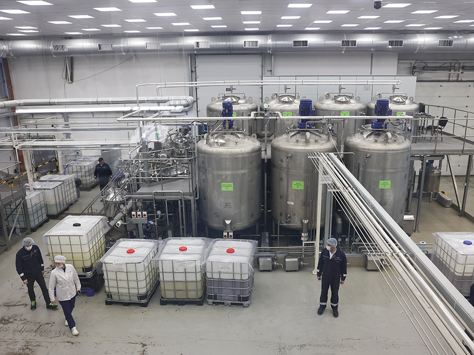 Сердце предприятия — четыре современных реактора: два из них производят шампуни и гели, два других готовят эмульсии — кремы и кондиционеры. В ближайшее время планируется установить еще два универсальных реактора.