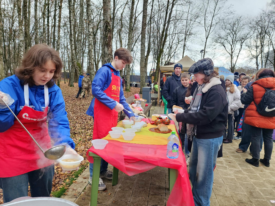 В рамках вкусной и душевной акции для гостей праздника приготовили 200 литров наваристых щей по старорусскому рецепту. Угощение для всех желающих солнечногорцев варили прямо в парке в казане на открытом огне. Запах по округе разлетался умопомрачительный, тем более было время обеда.
