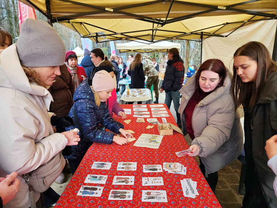 Позже в городском парке культуры и отдыха воцарилась такая же праздничная атмосфера. Он стал главной площадкой праздника. Здесь было шумно, весело и многолюдно. На сцене за памятником Лермонтову прошел живой концерт: звучали народные песни, люди танцевали. Рядом также можно было согреться ароматным чаем или угоститься чем-то вкусным на гастрономической ярмарке «Русское подворье».