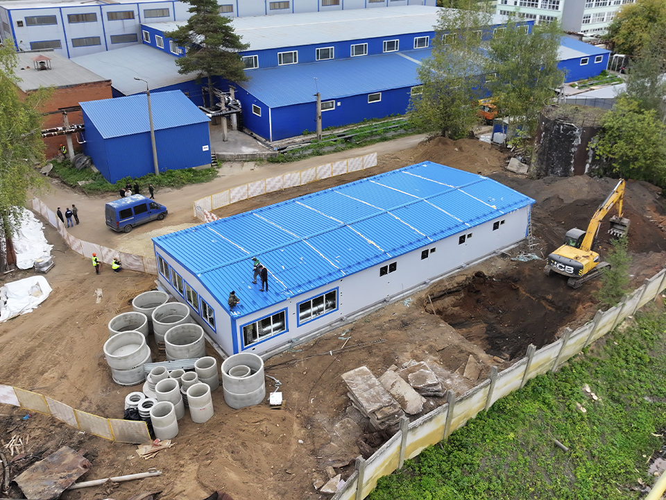 Новая автоматизированная котельная строится взамен старой изношенной и не требует присутствия персонала — контролируется через диспетчеризацию. На объекте уже залит фундамент и установлена БМК, ведется монтаж оборудования.