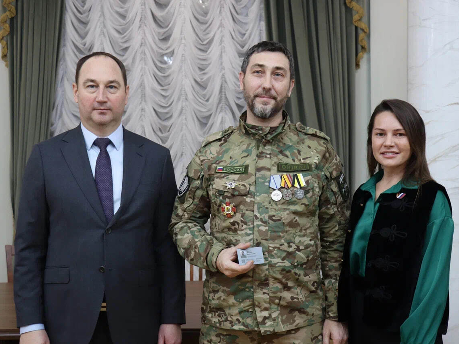 Церемония носила не только официальный, но и глубоко эмоциональный характер. В рамках встречи состоялась передача государственных наград семьям воинов, отдавших жизнь при исполнении долга. Родным и близким погибших защитников были вручены ордена Мужества и медали «За отвагу». Обращаясь к присутствующим, руководитель муниципалитета выразил глубокие соболезнования семьям героев, отметив их вклад в воспитание достойных сынов Отечества.