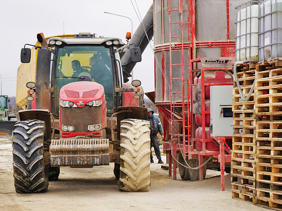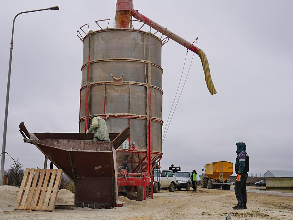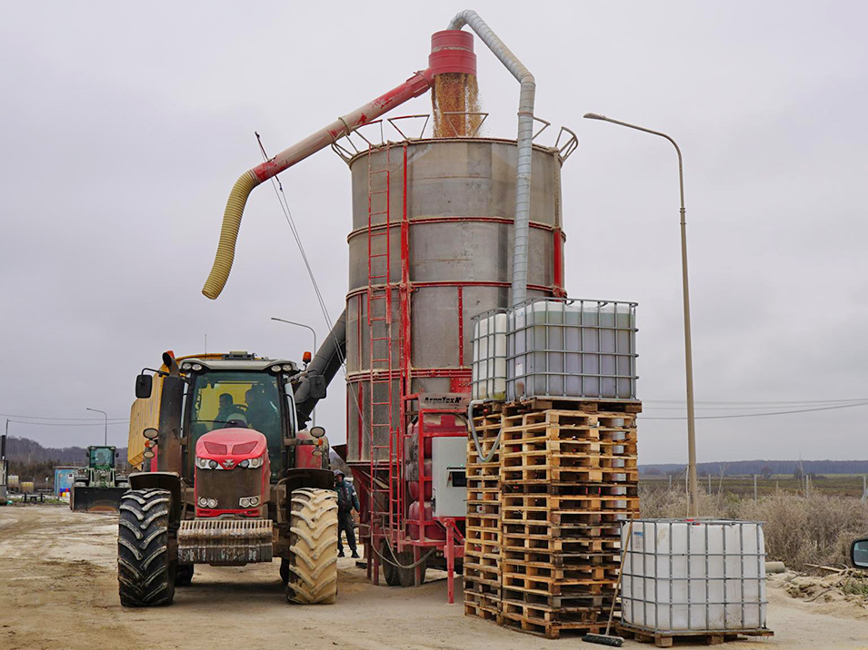 После этого урожай доставляют на ферму для обработки в зерносушильной машине.