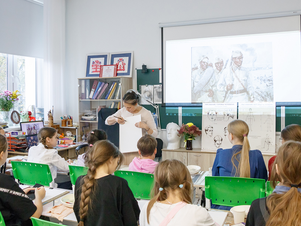 Основная часть встречи включала мастер-класс по рисунку с фотографии, где ребята работали гуашью, акварелью и карандашом. Пять лучших работ были отобраны для представления Ступинского округа на следующем этапе конкурса в Красногорске.