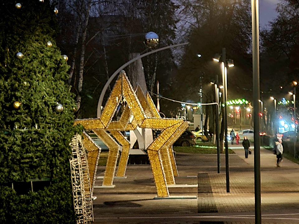 Все объекты активно освещаются, создавая вечернюю атмосферу праздника. Украшения появились и в других районах.