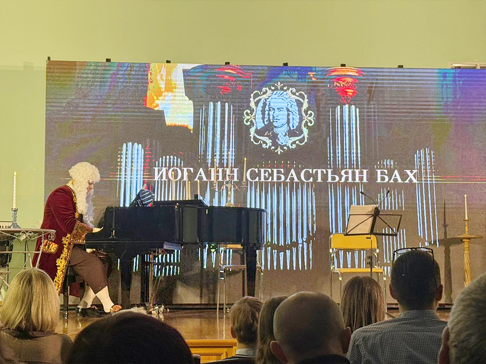 Особенностью вечера стало соединение музыки и театра. Со сцены прозвучали произведения Баха в исполнении Романа Беляева, Владимира Серикова и Алексея Сысоева. При этом сам композитор «лично» появился на сцене в образе, созданном автором проекта Алексеем Сысоевым.