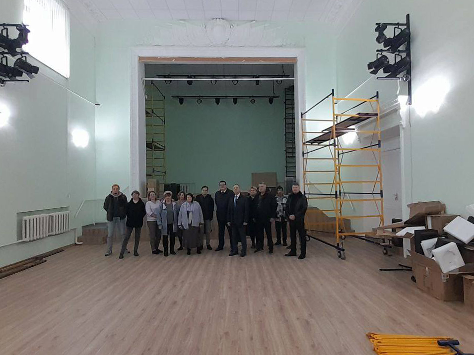 Дом культуры по многим параметрам приведен к изначальному виду, каким его задумывали при создании. В зрительном зале рабочие восстановили историческую лепнину, очистили и отреставрировали герб над главной сценой, смонтировали и подключили хрустальные люстры и бра. Также открыли ранее зашитые окна, что вернуло помещению естественное освещение. Зал будет оснащен новыми креслами на 200 мест, и современным звуковым и световым оборудованием.