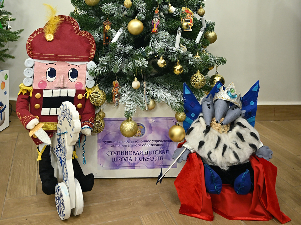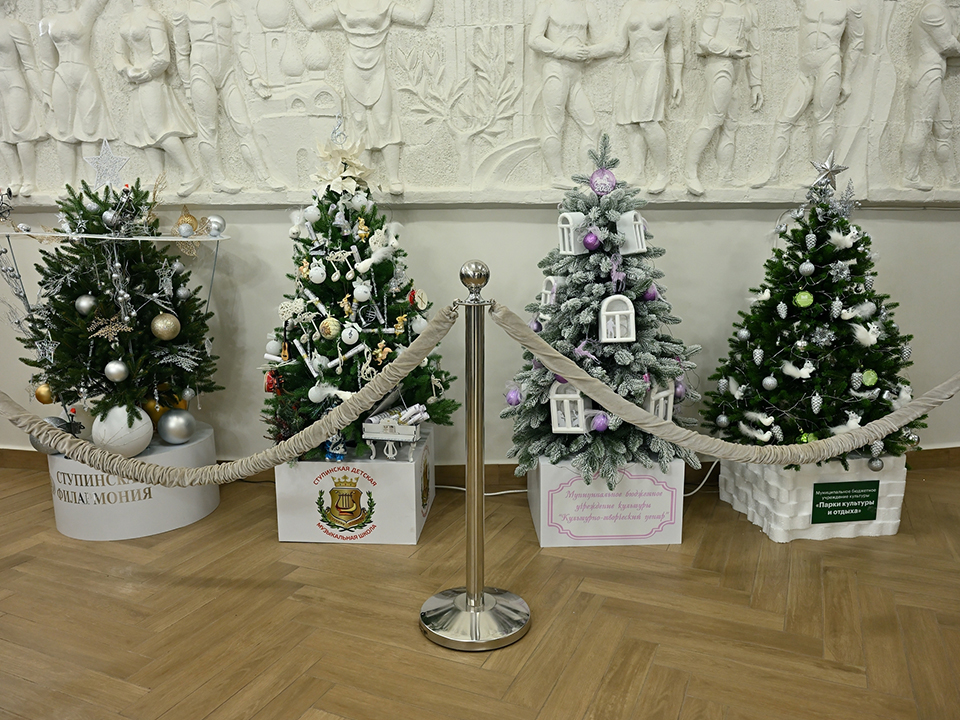 Вместо стандартных шаров и гирлянд — свитки нот, силуэты балерин и изображения спутника. В Ступине новогодние деревья стали высказыванием. Во Дворце культуры открылась выставка конкурсных работ «Культурная елка», где каждое учреждение создало необычную инсталляцию.