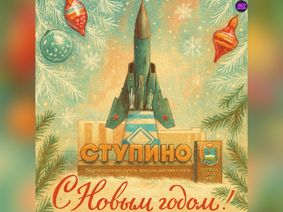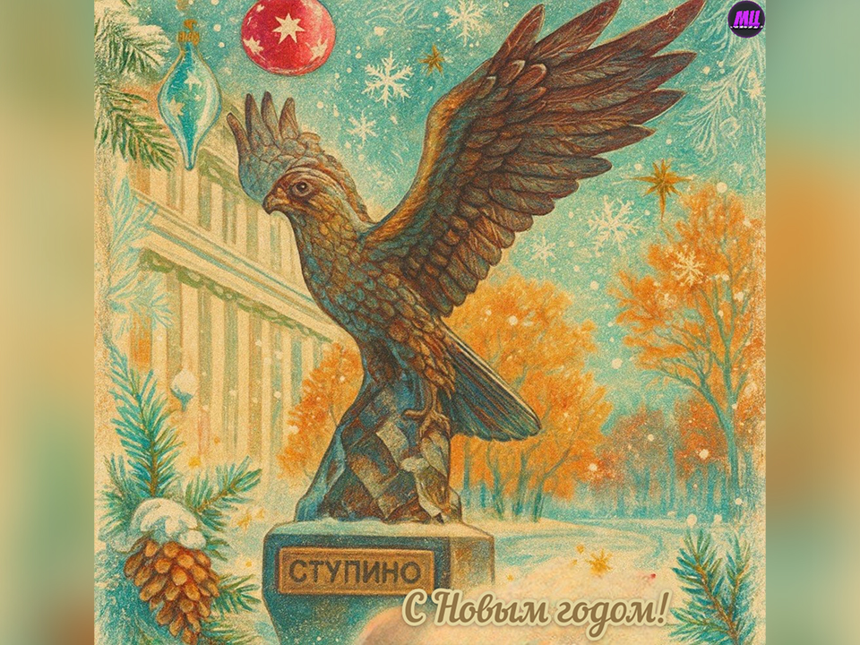 Знакомые улицы и памятники Ступина временно сменили эпоху. Молодежный центр округа представил серию новогодних открыток, где современные виды города выполнены в стилистике советской графики.