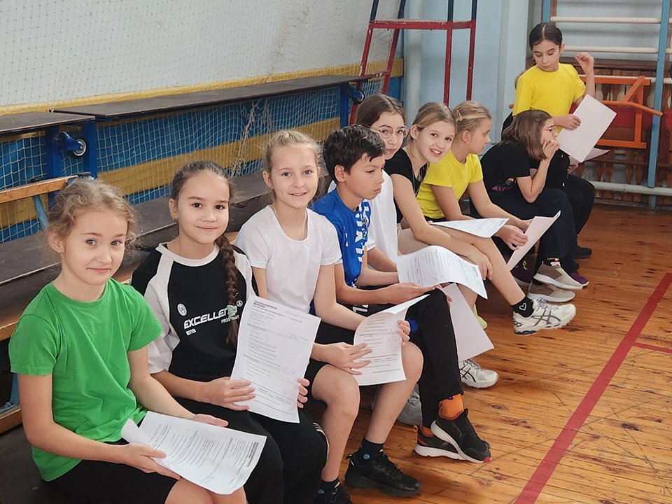 На мини-стадионе собрались ученики начальных классов школ №1, №2 и лицея №2. Каждому предстояло пройти от пяти до шести испытаний. В программу вошли подтягивания или отжимания, прыжки в длину, упражнения на пресс, челночный бег, наклон, метание и бег.