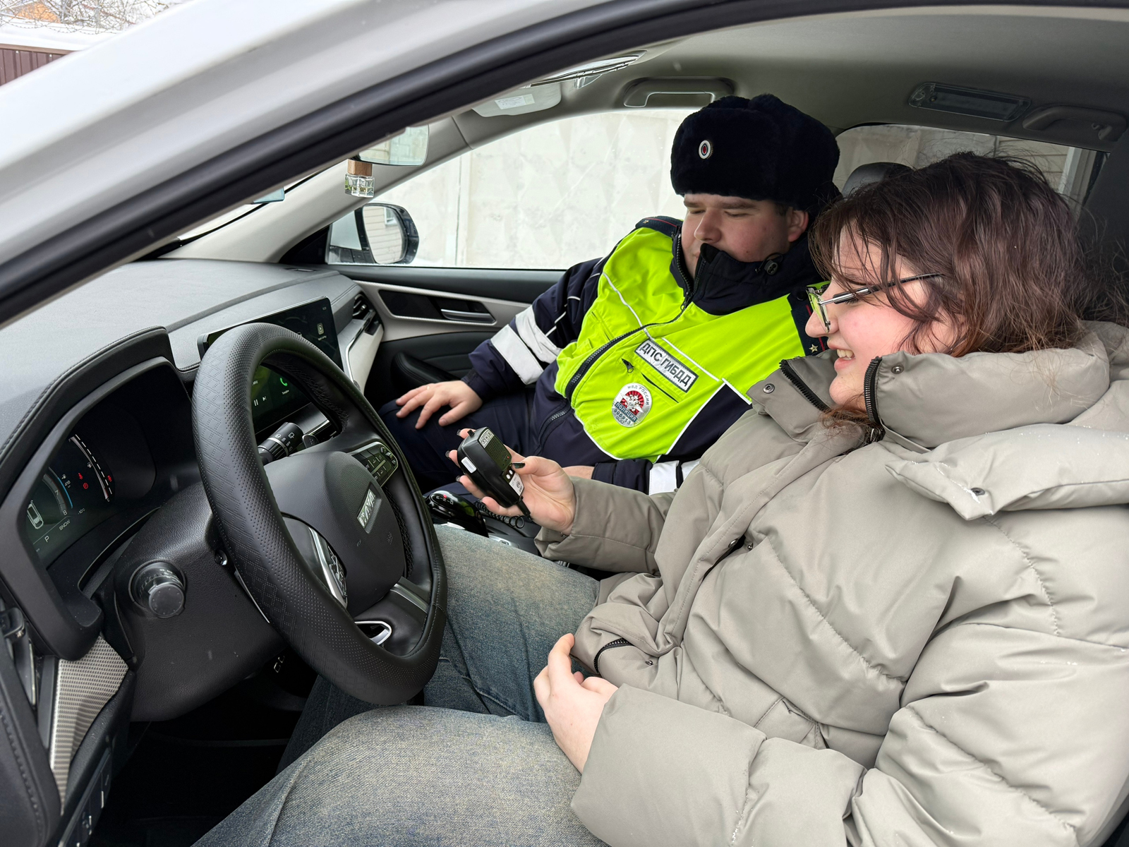 Студенты получили редкую возможность не только послушать теорию, но и увидеть практическую сторону службы. Им разрешили осмотреть патрульные автомобили, изучить работу специальных приборов и даже примерить настоящую защитную экипировку, которую используют полицейские.