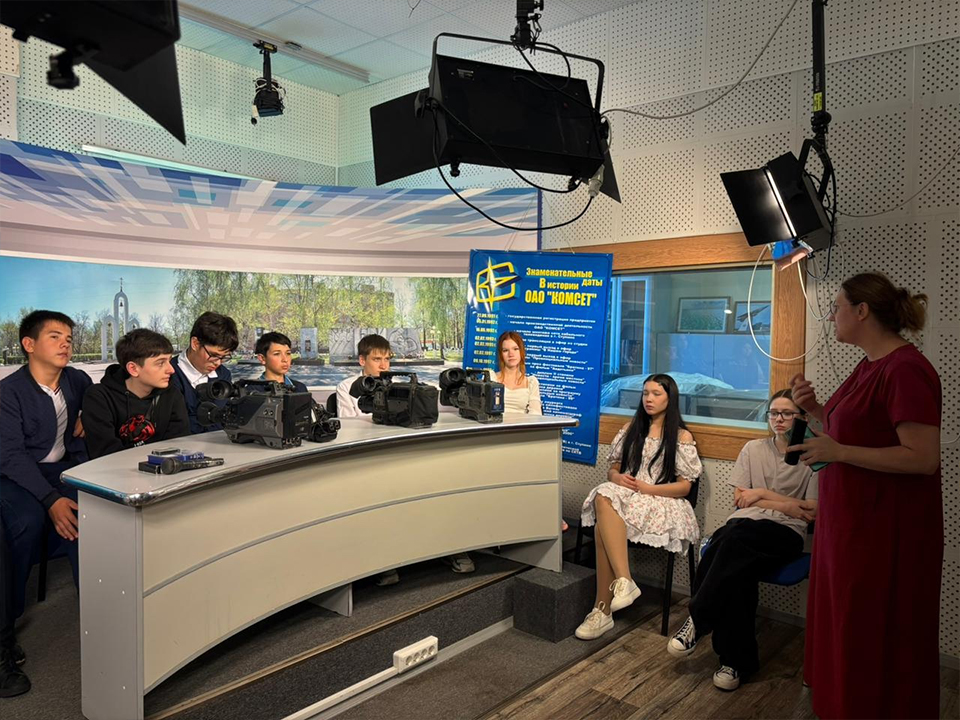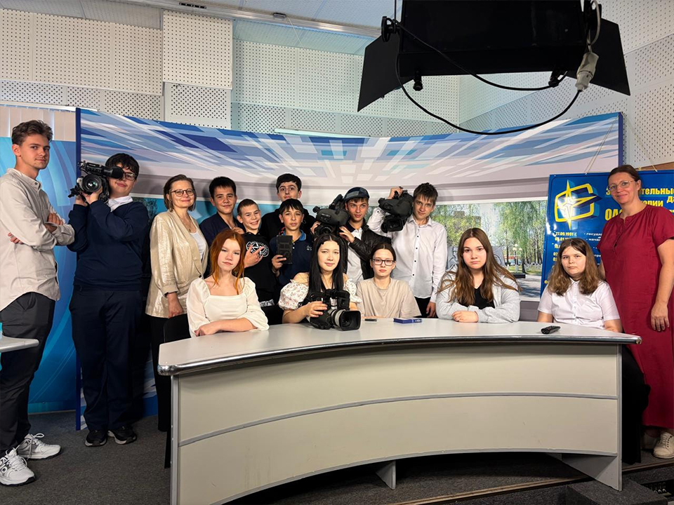 Главный редактор телекомпании Евгения Демидова показала школьникам, как создаются телевизионные сюжеты, и рассказала об эволюции телевизионной техники. После знакомства с теорией подростки смогли применить знания на практике, попробовав себя в роли ведущих новостей.