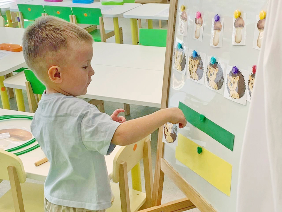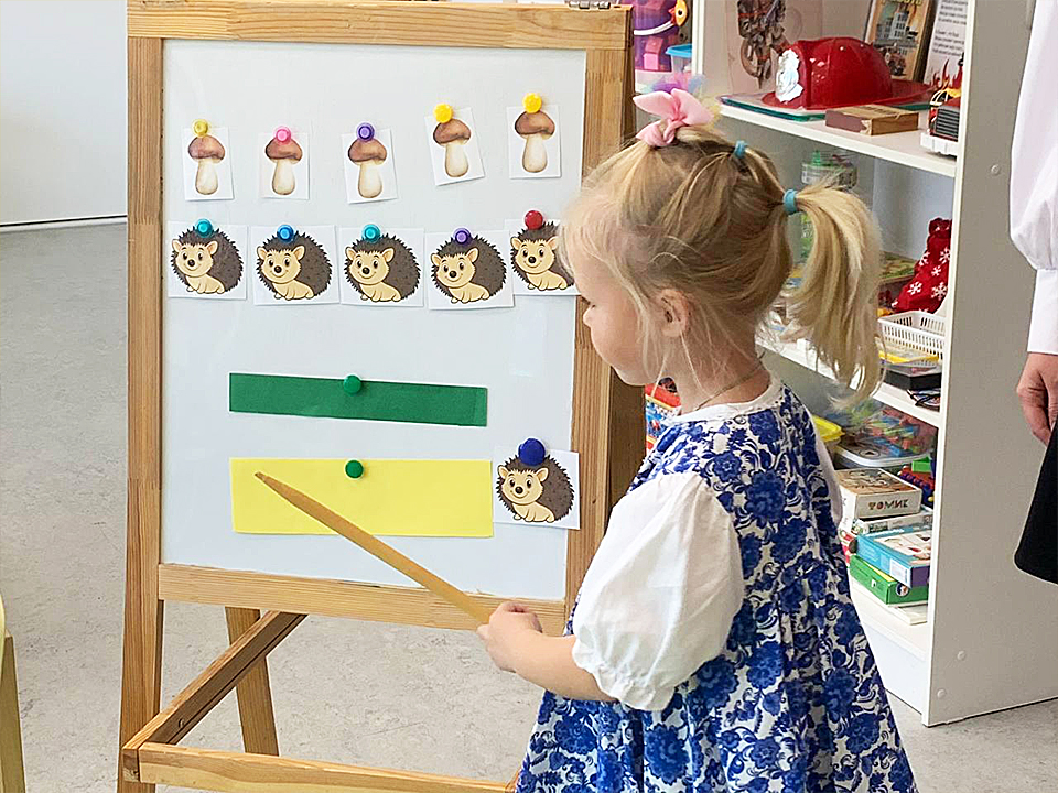 «То, что вы видите сейчас, это уже сделано нашими руками. Мы сделали сами магнитные стены, сами приклеили фетр», — рассказывает Галина Наухацкая, заместитель директора школы № 9 по дошкольным отделениям.