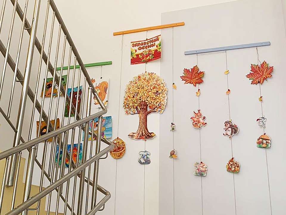 Концепция, которую реализует педагогический коллектив сада, — создание живого, «контактного» пространства. Когда дошкольное отделение открылось в 2023 году, это было новое здание с голыми стенами. Коллективу пришлось начинать с нуля.