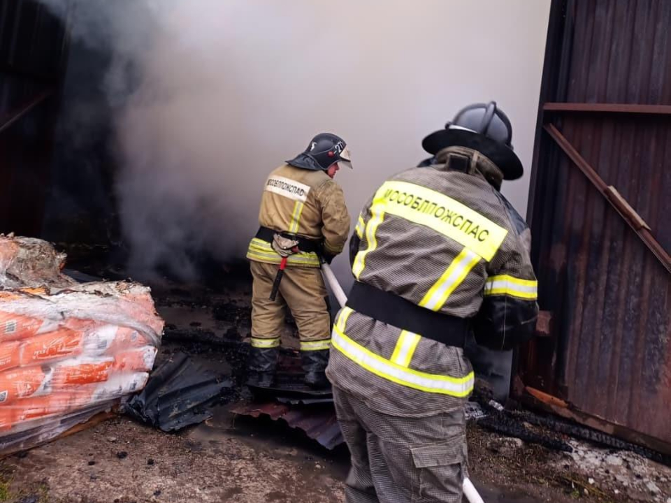 «По прибытии пожарные заметили интенсивное горение строительных материалов внутри одноэтажного металлического ангара размером 10 на 30 метров. Существовала угроза распространения огня на соседний ангар с легковоспламеняющимися жидкостями, что потребовало оперативного реагирования. Пожару был присвоен ранг 1-БИС. Работники подразделений оперативно проложили рукавные линии от пожарного автомобиля и направили два ствола РСК-50: один на тушение пожара, другой — на защиту соседнего складского помещения», — рассказал начальник караула Сергей Верещагин.